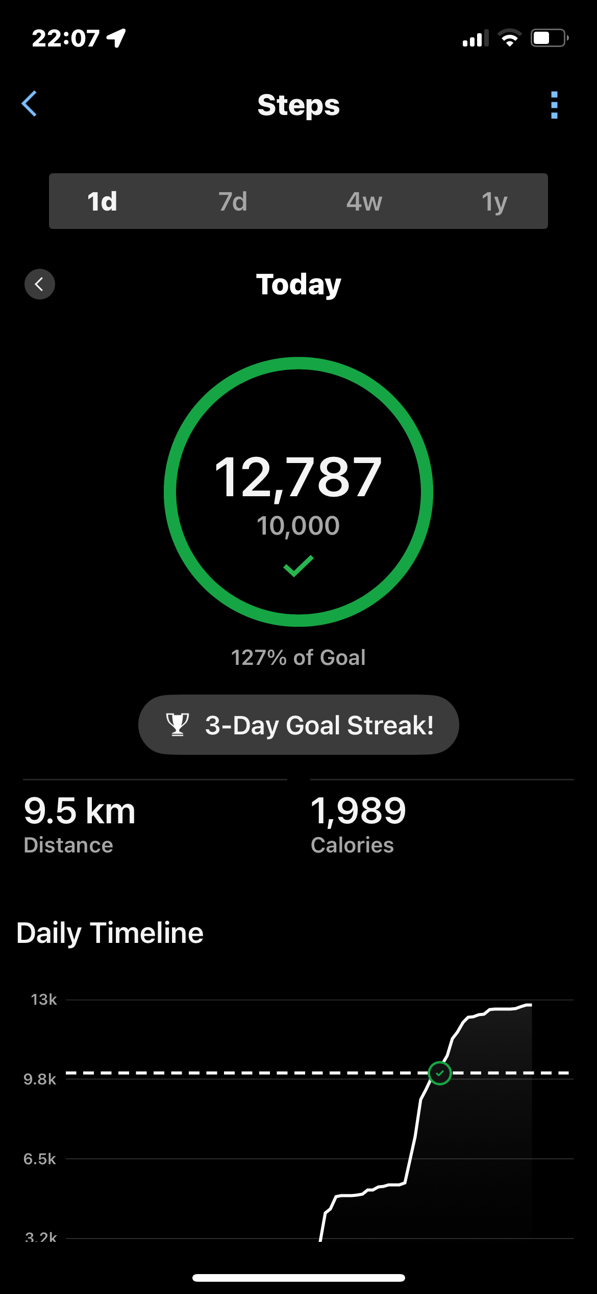 Reached 50% of stepping goal